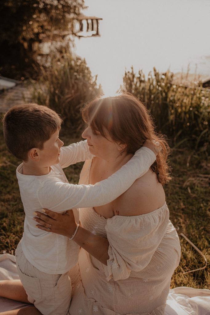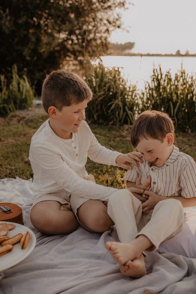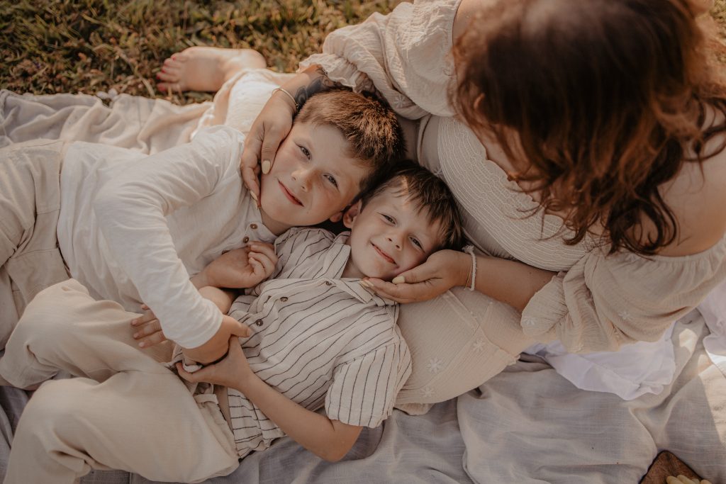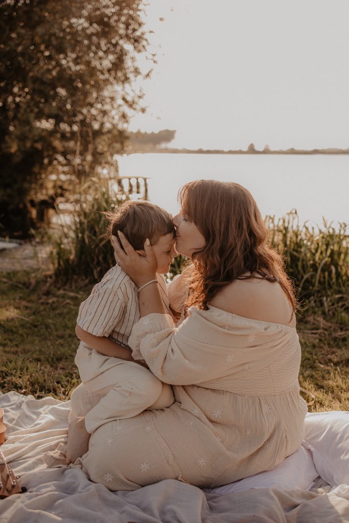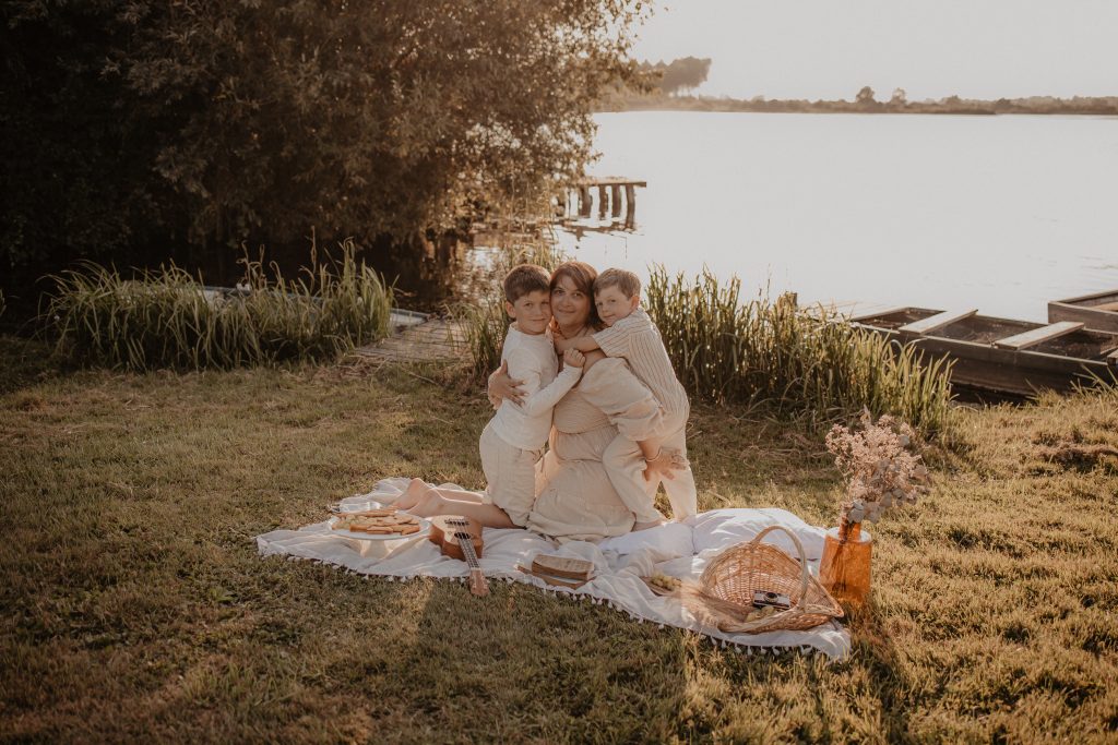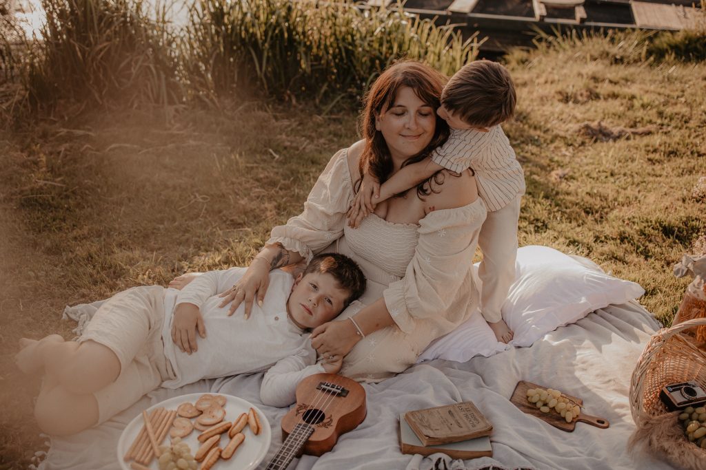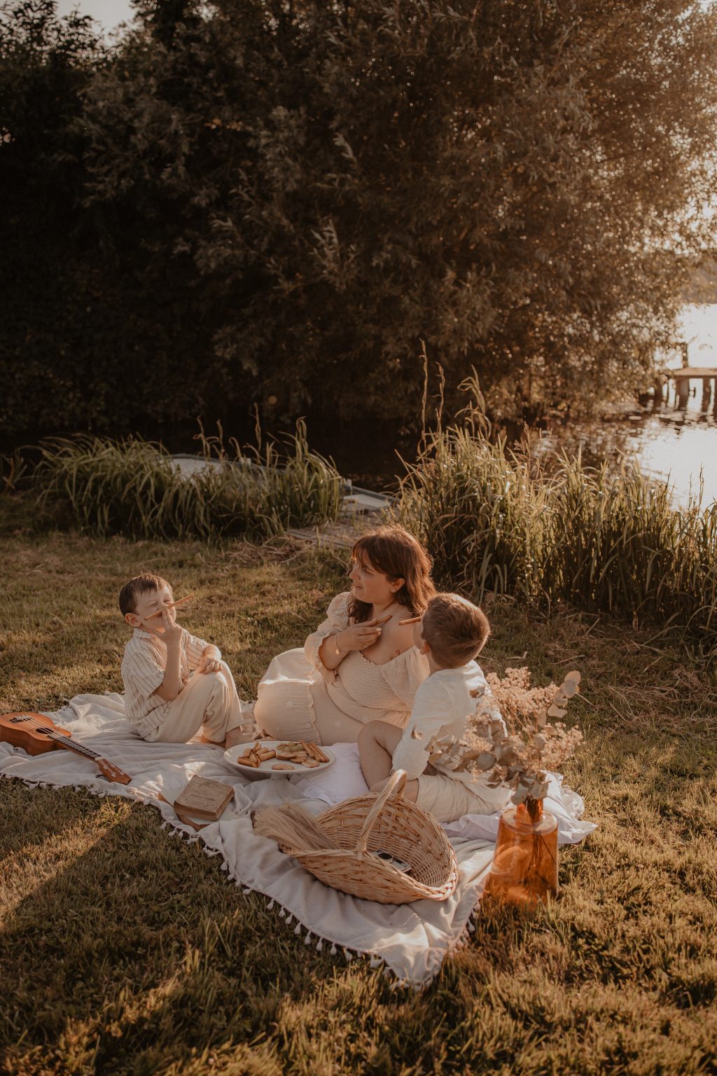 Par une douce soirée d’été, j’ai retrouvé cette jolie famille à 5 minutes d’Arleux, au bord de l’eau, pour une séance photo pleine de chaleur et de tendresse. Le soleil commençait à se coucher, enveloppant la scène d’une lumière dorée et douce, parfaite pour créer des images naturelles et intemporelles. Le thème de cette séance : un pique-nique champêtre, au cœur de la nature. Une grande couverture blanche, un panier garni, quelques douceurs à partager… et surtout, une maman et ses deux garçons rayonnants de bonheur.