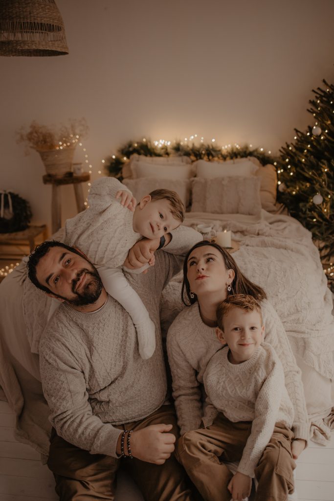 Le mois de novembre a été particulièrement doux et joyeux cette année : un vrai concentré de magie avant l’heure. Comme chaque année, j’ai accueilli les familles pour les mini-séances de Noël. Au total, 14 familles sont venues au studio, et je peux vous dire que l’atmosphère était aussi festive que bienveillante. Les enfants ont été fantastiques : 98 % ont joué le jeu avec enthousiasme. Poser devant le sapin, sauter sur le lit, souffler les confettis… Ils se sont laissés porter par l’esprit de Noël, et ça se voit sur les images. (Et pour les 2 % restants : la timidité fait aussi partie des souvenirs, et on l’accueille toujours avec douceur)