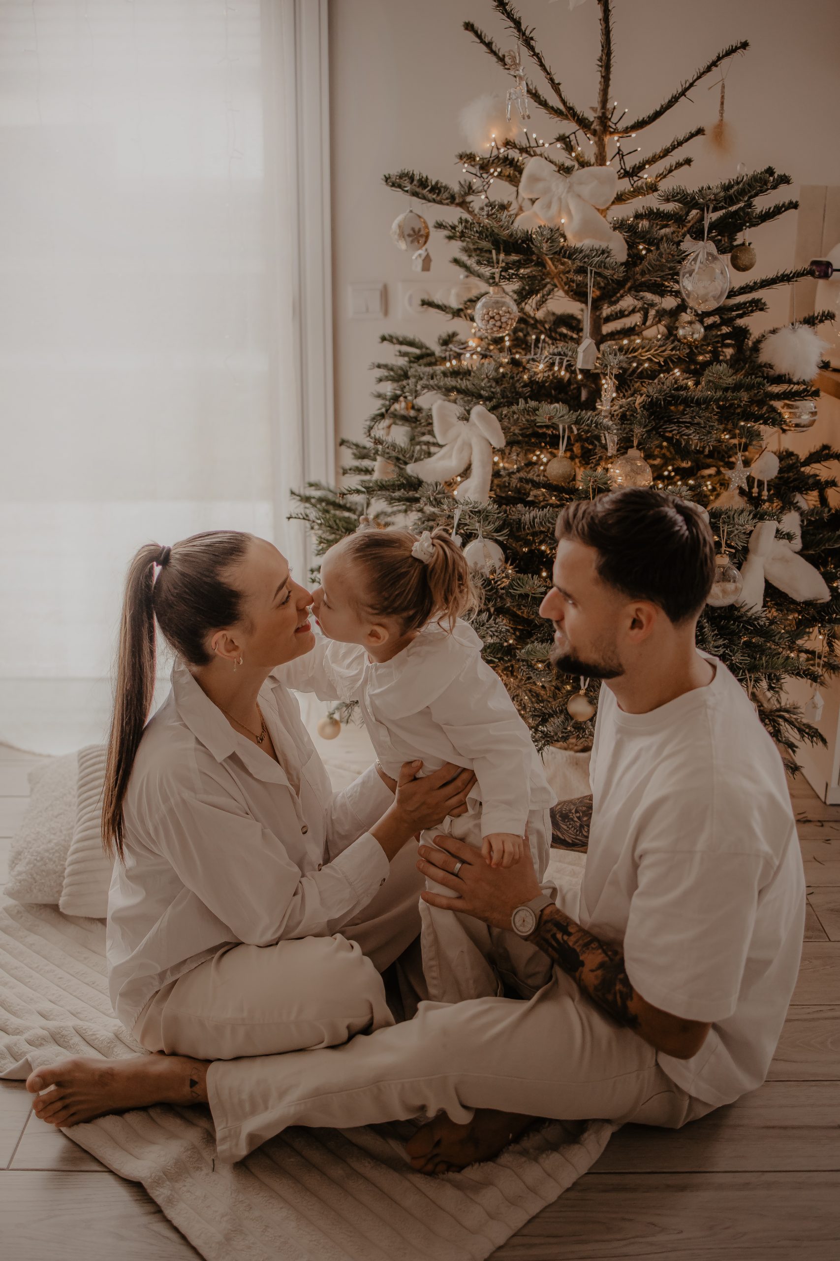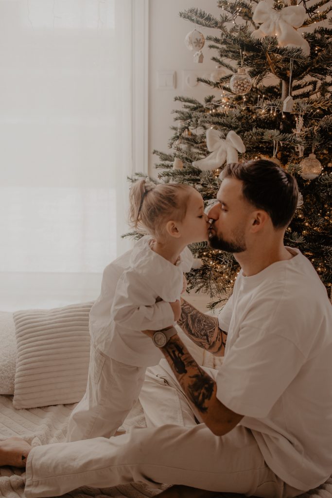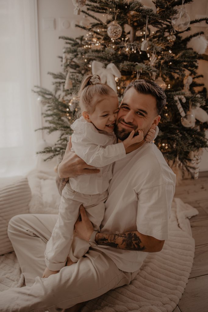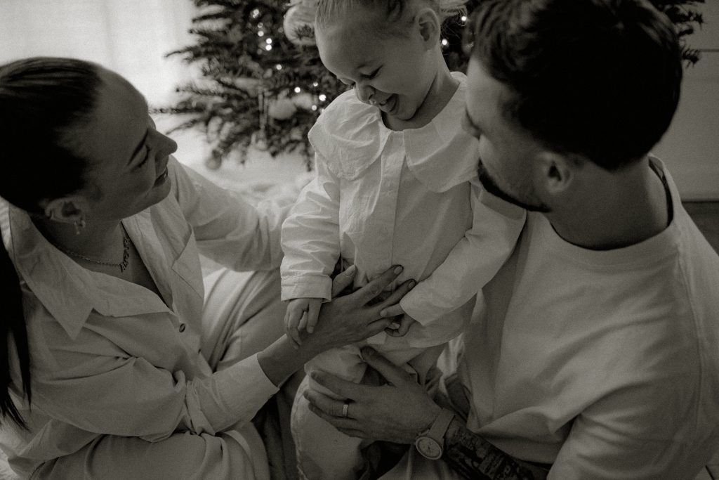 Il y a des séances qui racontent une histoire toute particulière. Celle-ci en fait clairement partie. Quelques jours avant Noël, je me suis déplacée au domicile d’une famille, pour immortaliser des moments simples et vrais : une maman, son mari, et leur petite fille de 2 ans, dans leur univers, autour du sapin, dans cette atmosphère si douce propre aux fêtes de fin d’année. Une séance photo cocooning, remplie de rires, de câlins… et de spontanéité.